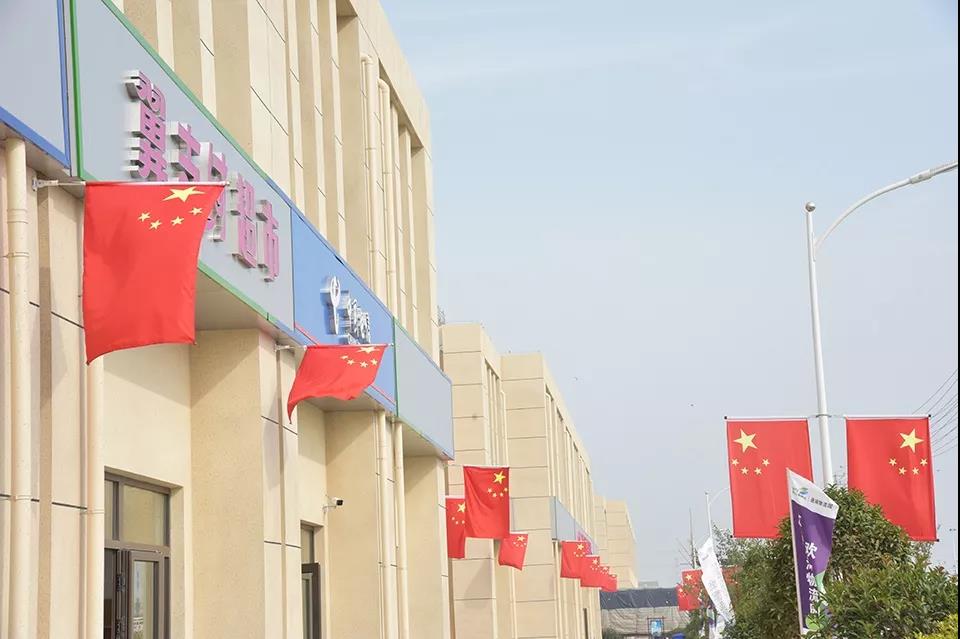 国庆氛围营造以“国旗飘扬庆国庆”为主题,在园区道路两旁的灯杆、零担档口和临街商铺悬挂五星红旗,营造了“国旗飘扬,喜迎国庆”的浓厚节日气氛。