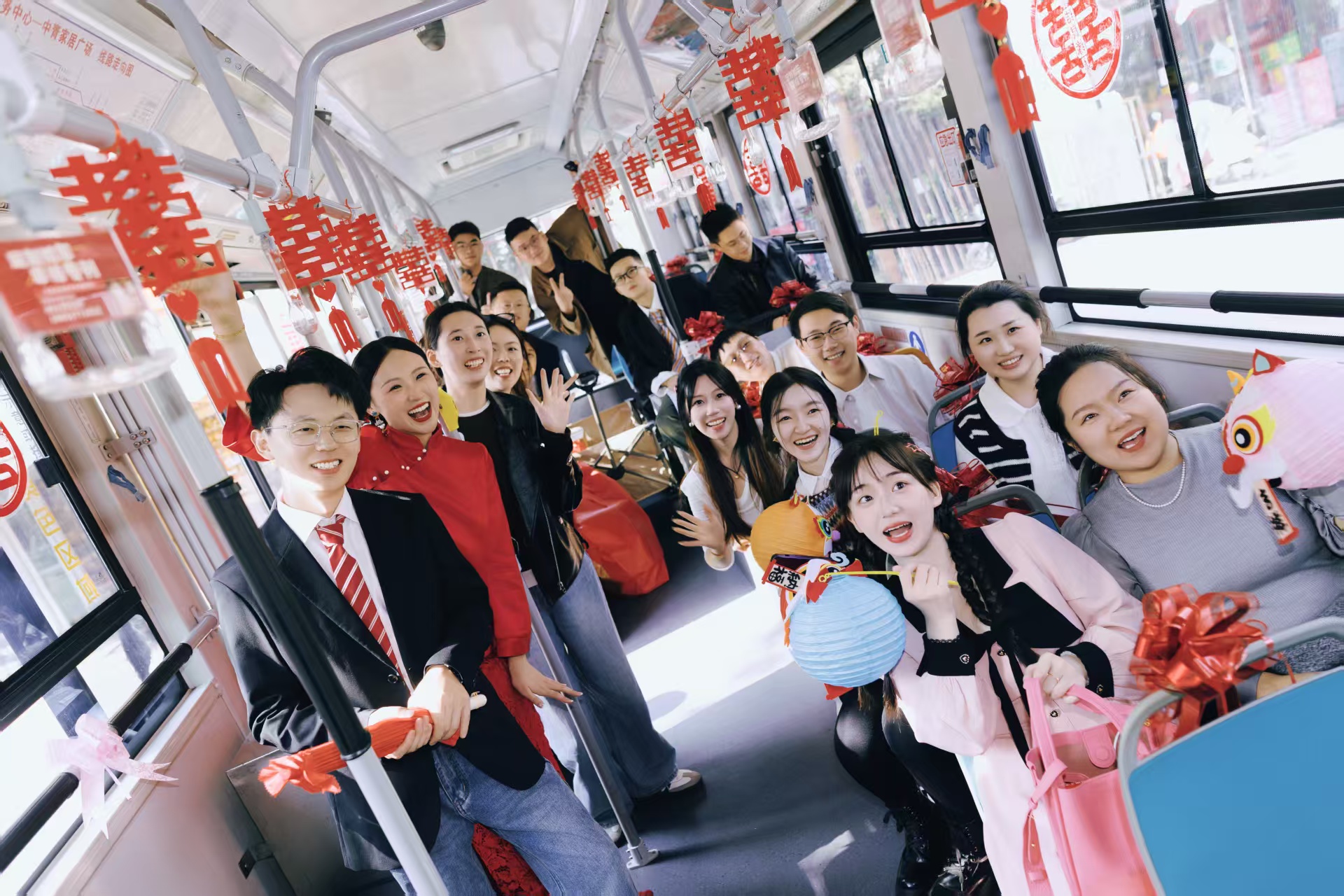 近日,两辆装扮得喜气洋洋的“酒都小巴”格外抢眼——车头“520”标识寓意甜蜜,车窗上大红“喜”字熠熠生辉。新郎张先生、新娘苏女士与20多位亲友一同乘坐这两辆特殊的“公交婚车”驶向婚礼现场——这是宿迁以“公交婚车”引领文明婚俗的又一鲜活场景。