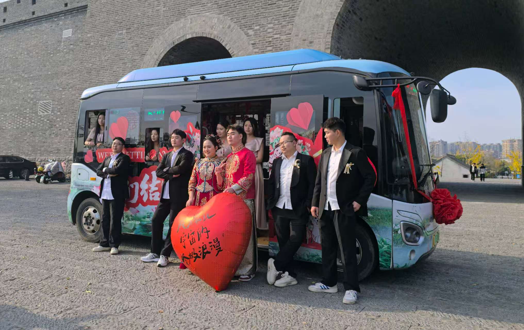 公交婚车的走俏,离不开背后完善的服务支撑与精准的政策引导。为满足新人的个性化需求,公交公司专门推出定制服务:新人可根据宾客数量灵活选择“酒都小巴”或公交大巴,还能自主设计车内装饰、规划专属接亲路线,串联起城市里的爱情地标,打造独属于自己的婚礼记忆。公司相关负责人表示:“今年,已有近50对新人选用新能源公交车作为婚车,公交婚车已然成为宿迁年轻人的婚嫁新时尚。”这股文明新风尚,正持续升温。