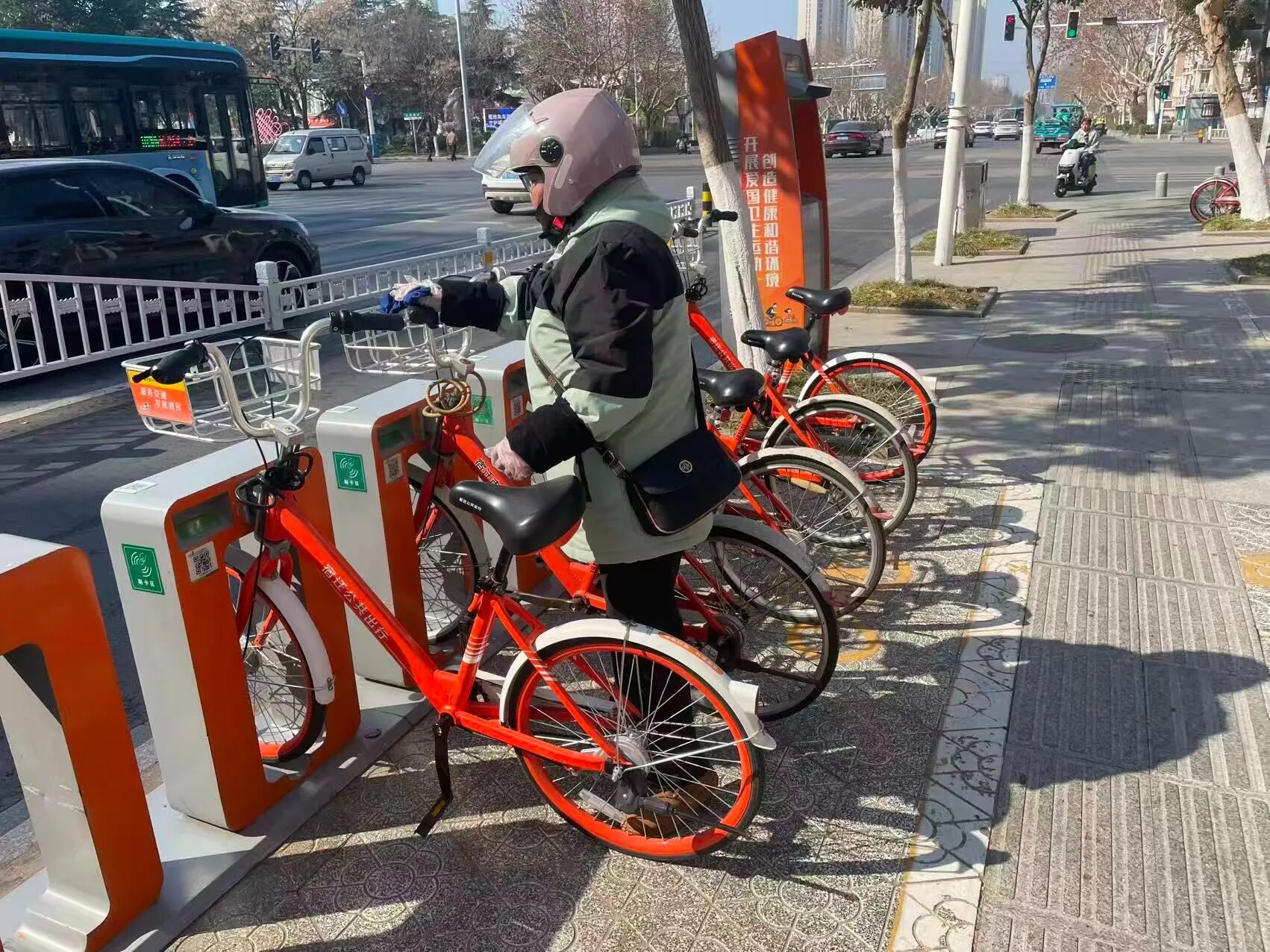 刘虎介绍,为确保春节期间站点有序运营,交通科技春节前对站点及车辆进行了全面排查,排除锁桩问题和车辆掉链、螺丝脱落等问题。春节期间,该公司成立了专门的应急小组,由公司运营部负责人带队,进行24小时待命,解决突发问题。