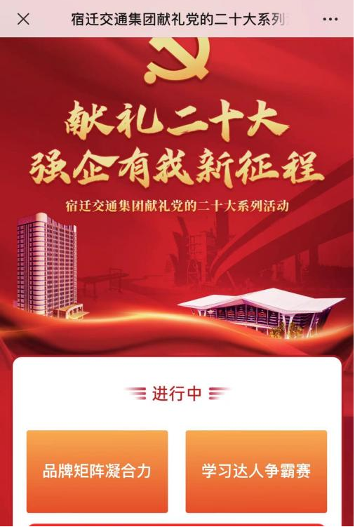为引导广大党员干部职工深入学习贯彻党的二十大精神,全面掀起学习热潮,推动党的二十大精神在宿迁交通集团落地生根、开花结果,近日,集团组织开展“献礼二十大 强企有我新征程”学习达人争霸赛活动。