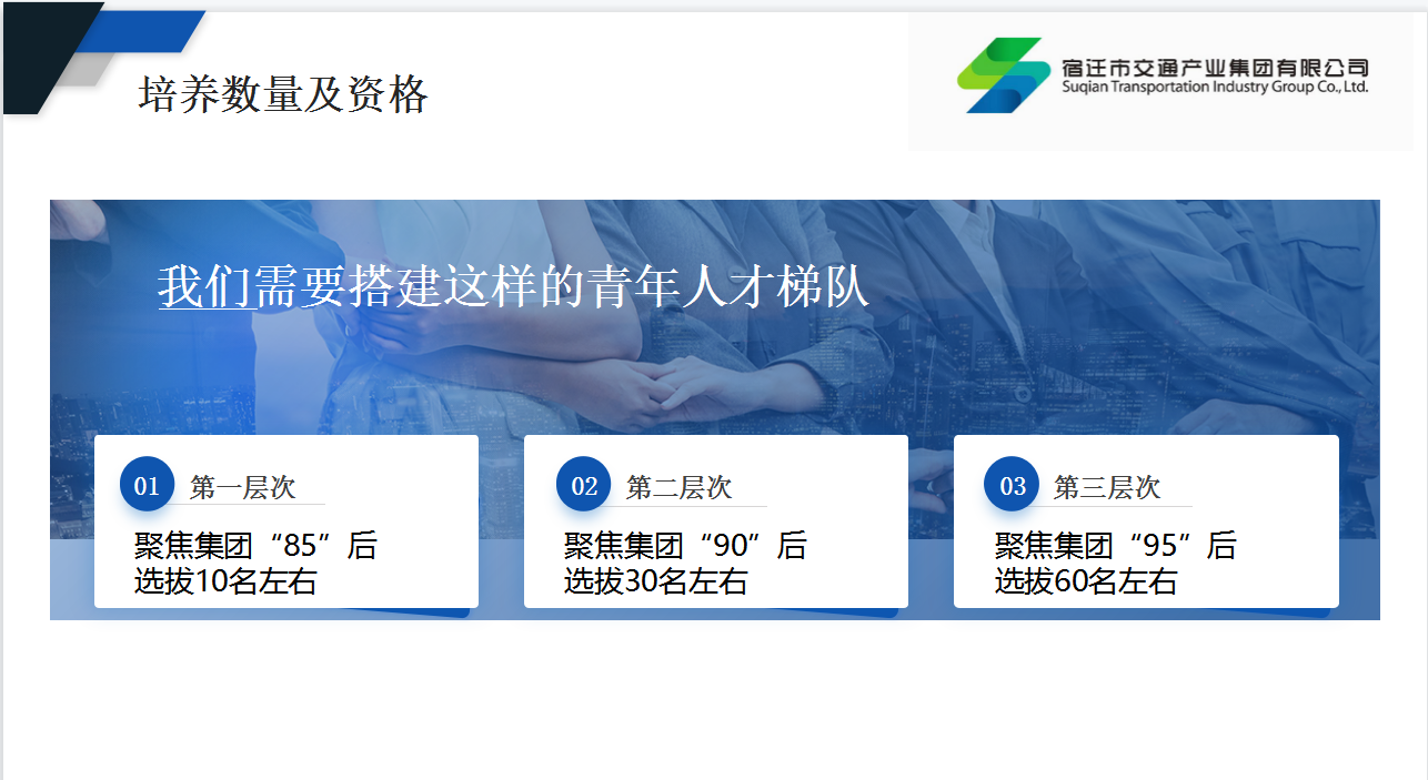据了解,首批入库“星光计划”人数约100人,分为三个层次,分别聚焦宿迁交通集团“85后”“90后”“95后”,采取单位推荐和自荐两种方式进行选拔。入选人员将按照一人一档建立个性化跟踪档案,实行“N(年度专项培训)+3(跟踪培养)”模式,内外联动,配备专业导师,进行系统化、专业化、多样化培训,通过对青年技能人才锻造和青年经营管理人才赋能,强化政治历练、思想淬炼、实践锻炼、专业训练,为其搭建成长平台,完善激励保障,助力成长成才,着力锻造一支“敬责、务实、协同、创新”的青年人才队伍,为宿迁交通集团高质量发展提供坚强有力的青年人才保障。